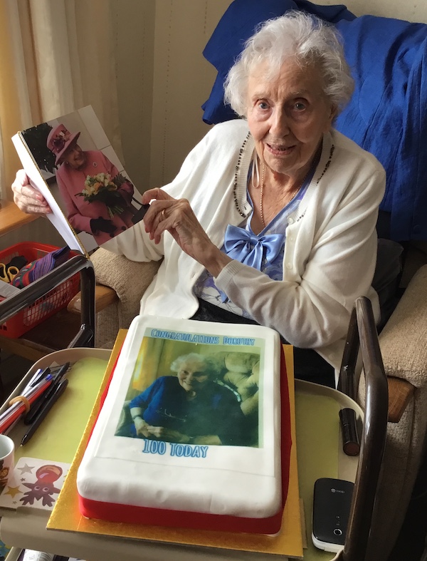 This September she was thrilled to celebrate her 100th birthday, and was delighted to receive a card of congratulation from the Queen. She still lives in her bungalow, and her room was filled with flowers, cards and gifts from so many people. Because of Covid, she was unable to have the large party she was hoping for, but her WI friends came to her garden, suitably spaced, to sing Happy Birthday, raise a glass and cut a specially made cake.
